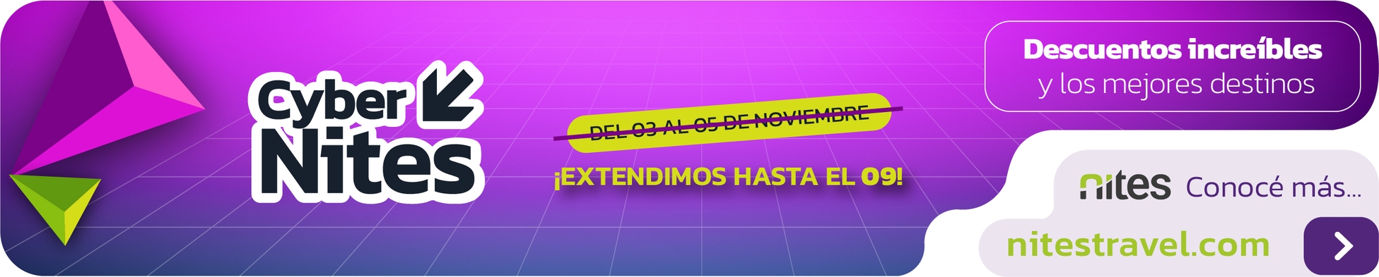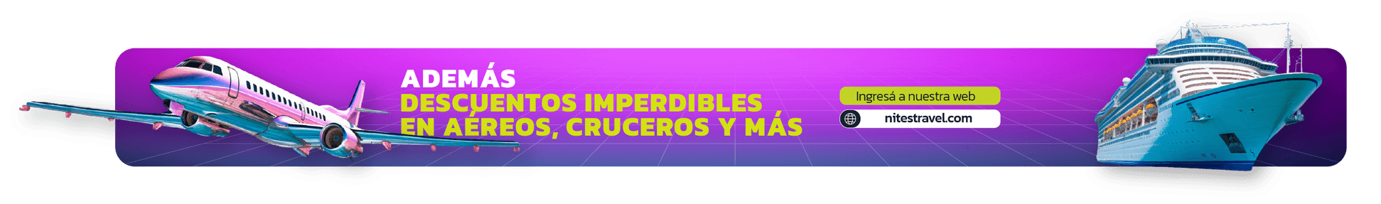 Promoción válida para reservas del 03 al 09NOV 2025 o hasta agotar stock. Las ofertas promocionadas se verán reflejadas con los descuentos ya aplicados en nitestravel.com excepto programas con Cupos Verano 2026 que deberán ser requeridos a través de reservas@nites.travel y los mismos están sujetos a stock de 4 lugares por salida. Precios comisionables diferenciados por servicio sujetos a disponibilidad y/o modificaciones. Aplican Términos y Condiciones. Las promociones aplican exclusivamente a nuevas reservaciones a partir de la fecha de vigencia de la campaña o hasta agotar stock, y no son combinables con otras promociones. Consultar con reservas@nites.travel la forma correcta de reserva para acceder a los beneficios de la campaña, caso contrario no aplicarán, sin admisión a reclamo futuro. Consultar posibles gastos de cancelación una vez reservados los servicios. Es responsabilidad de los pasajeros chequear los requisitos migratorios y/o sanitarios para ingresar a cada país/región. Los precios no incluyen IVA Nites (2,1%) ni Percepción AFIP, de corresponder. Pauta exclusiva para agencias de viajes. Tour Operador: Nites - Viacor SA EVT Le. 13.997.